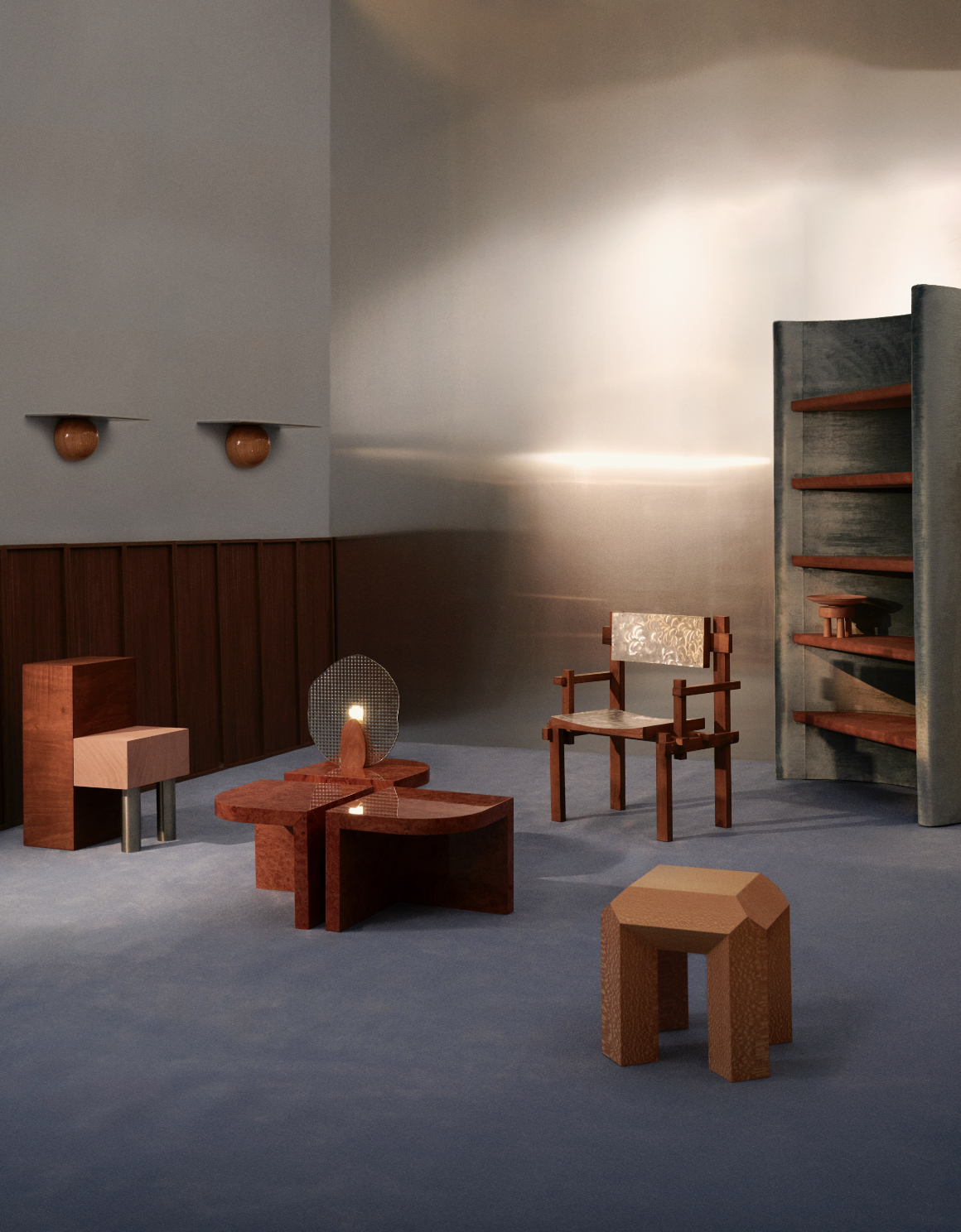 À la fois designer et artisan ébéniste, Jonathan Cohen travaille le bois dans un langage sculptural, aux formes géométriques variables. Des pièces de caractère, aux savants jeux de proportions, qui déploient une écriture décorative espiègle et incarnée. Les styles s’entremêlent, caressant les mouvements Art déco et Memphis, et donnent naissance à une série d’objets hors du temps. Sa formation de designer graphique imprègne son travail du motif. Une forme abstraite de typographie, entendue comme le rythme des lettres sur le papier, orne certaines de ses créations teintes au tampon sur bois. L’application à la main apporte singularité et irrégularité à cette esthétique de l’impression. Formé à l’ébénisterie en 2021, Jonathan Cohen dessine et fabrique dans son atelier de La Courneuve.